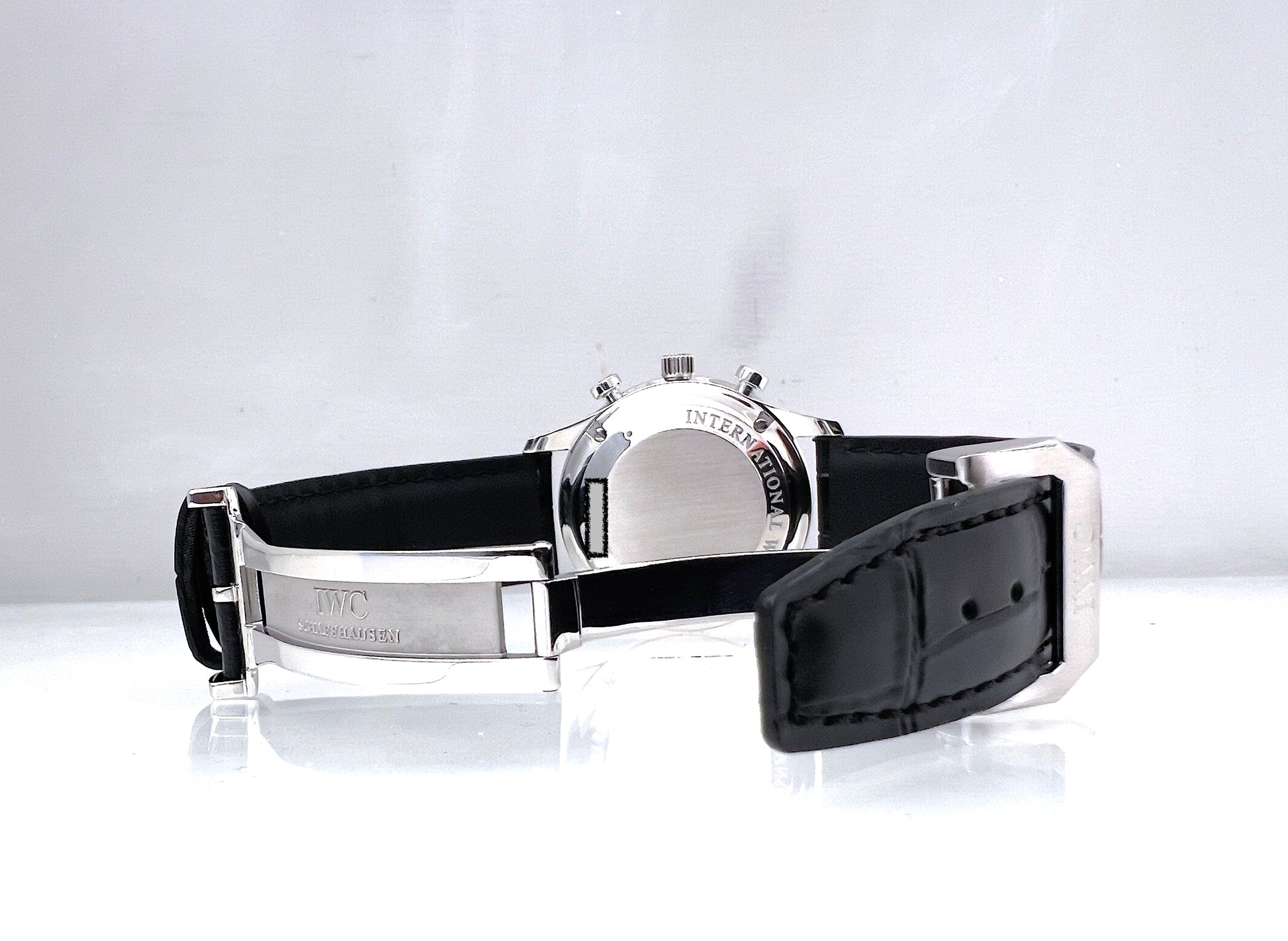 Orologio in condizioni commoventi, ref. IW371446, quadrante bianco con indici e sfere azzurrati, 2016, scatola e garanzia.