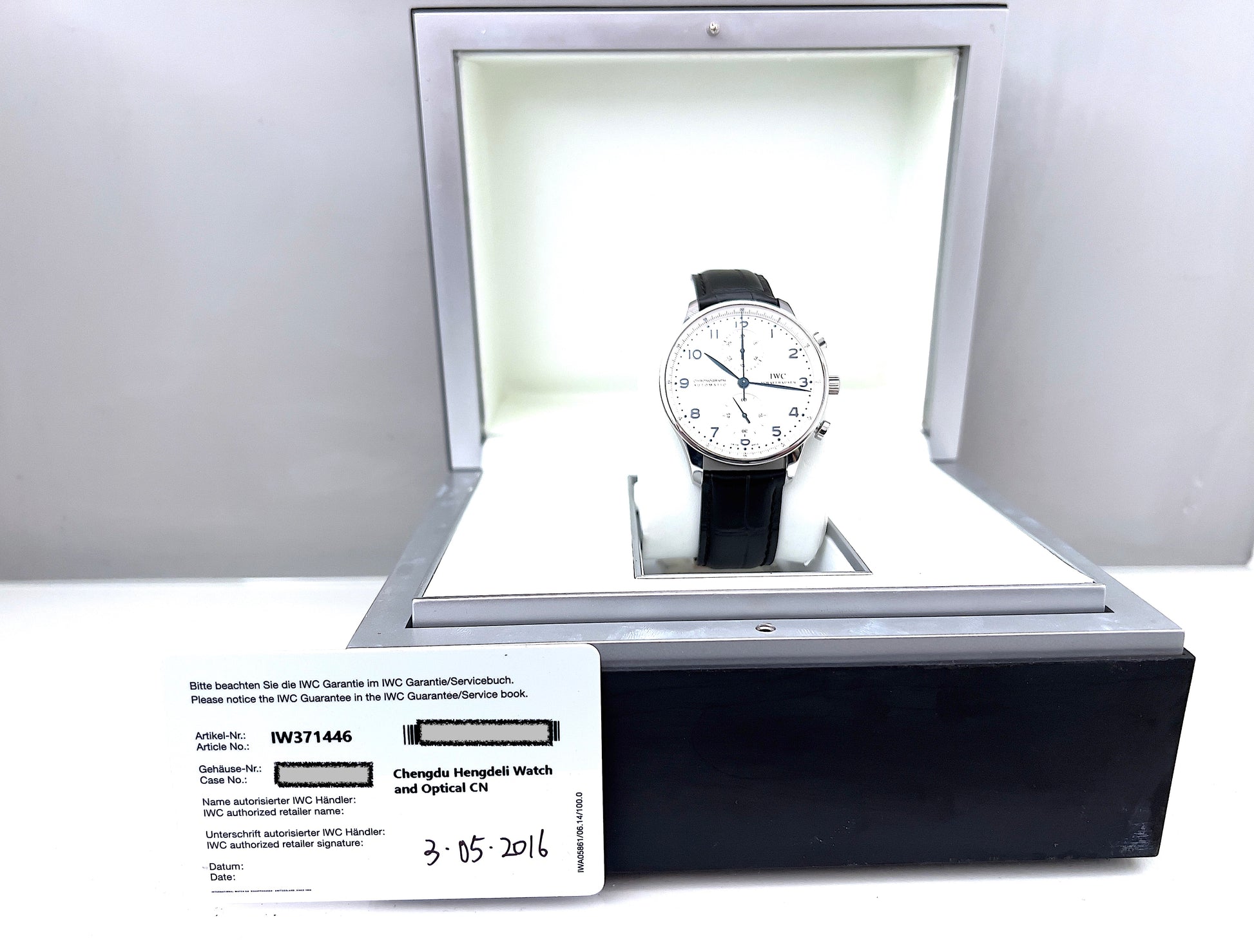 Like new watch, ref. IW371446, white dial with blue hands and index, 2016, box and paper.