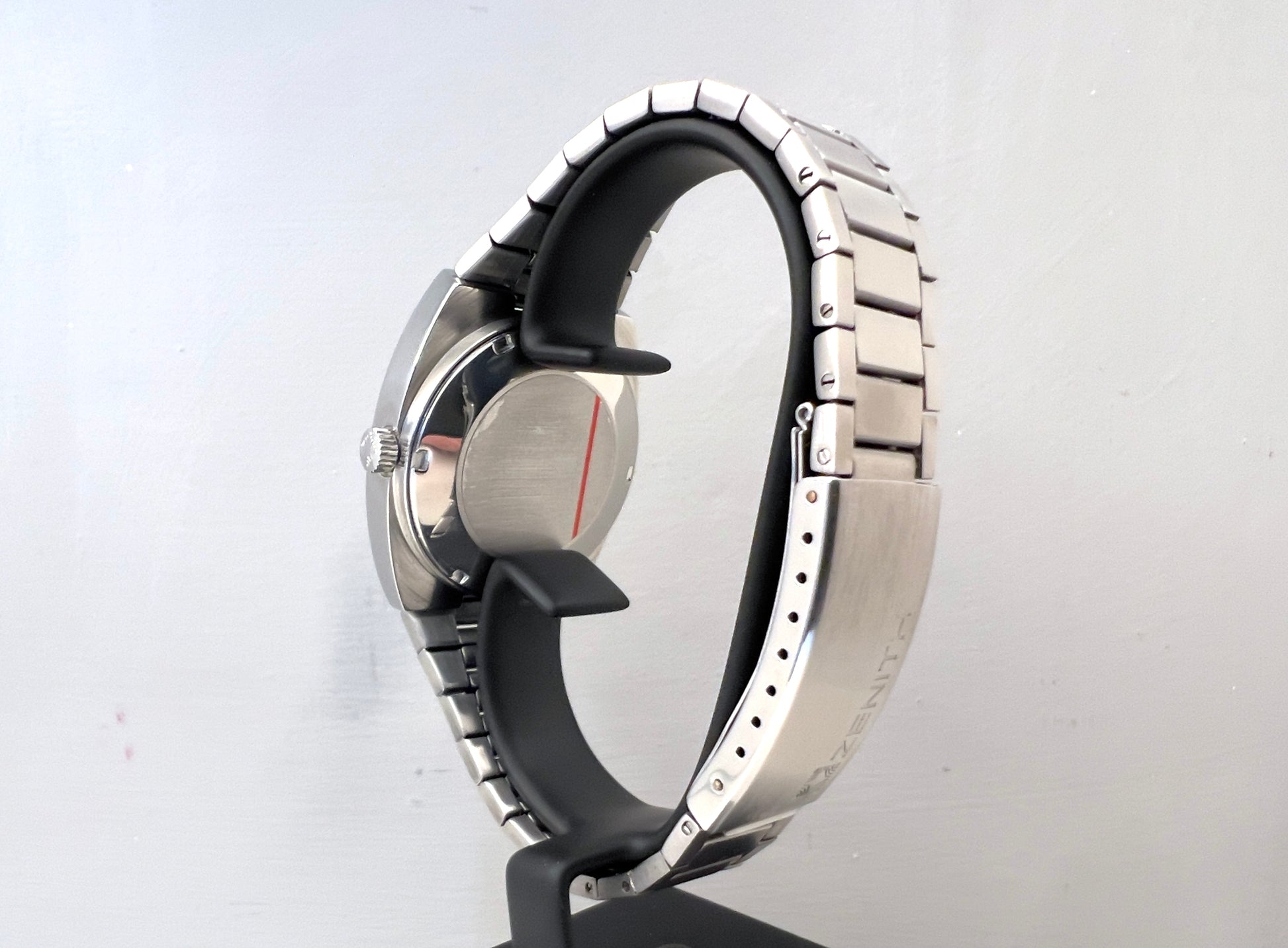 Very rare vintage Zenit, impossible to find one like this. Ref. 01.0030.382, 2572PC automatic caliber, 36x40 steel case, silver linen dial, original steel bracelet, original crown.