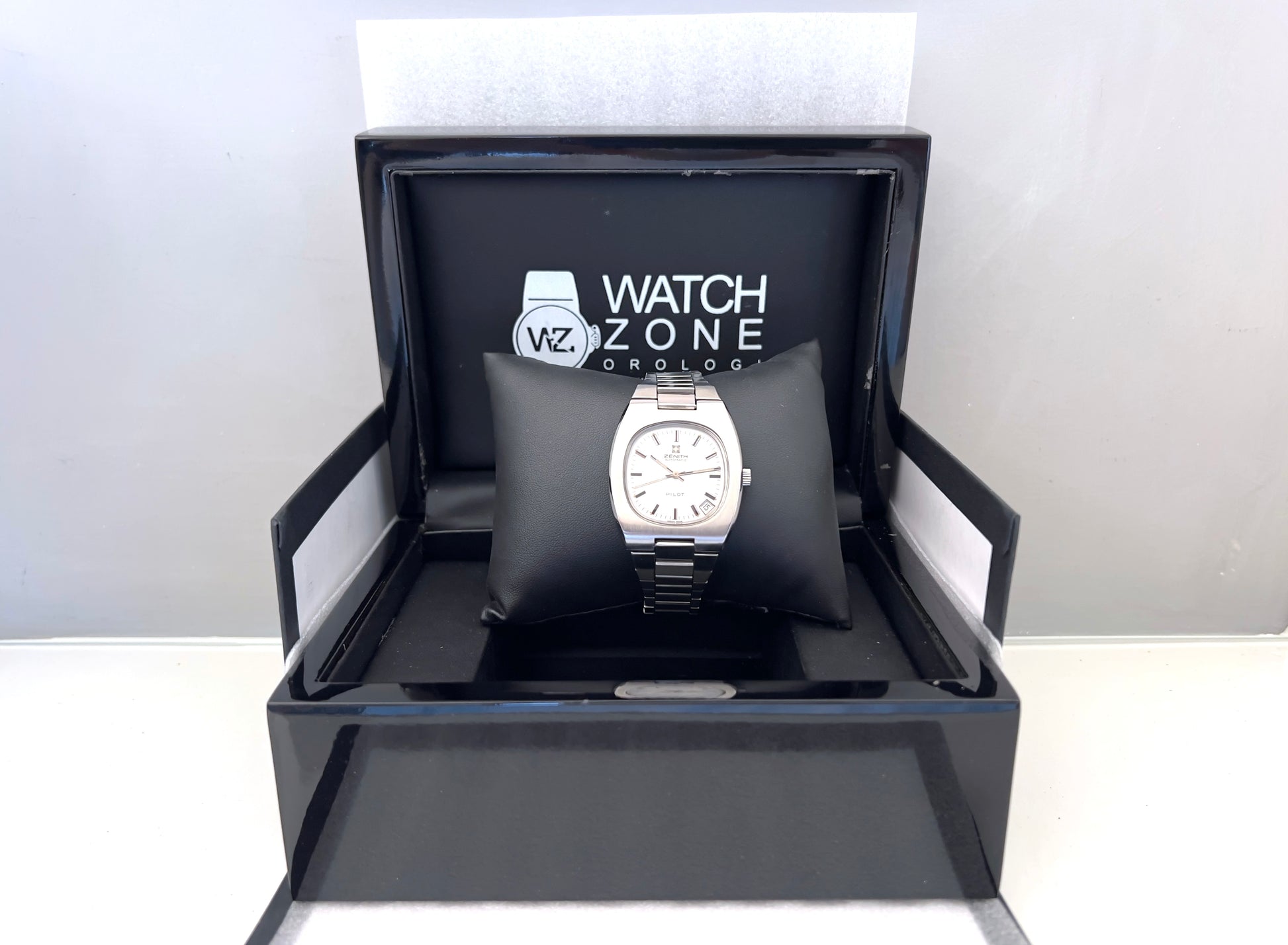 Raro Zenith d'epoca, in condizioni uniche, impossibile trovarne uno conservato cosi' bene. ref. 01.0030.382, calibro 2572PC automatico, cassa 36x40, quadrante silver mille righe, bracciale originale, corona originale.